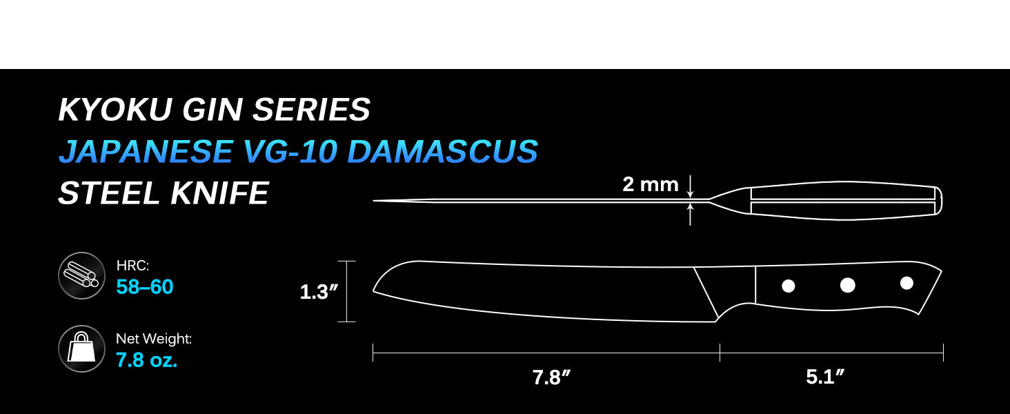 - FULL-TANG CONSTRUCTION: The 66 layer Damascus VG10 stainless steel blade extends to the entire length of the handle, withstanding punishing daily use without sacrificing precision and control.