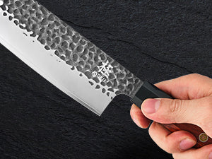 - Meticulous Craftsmanship: The hammered patterns on the blade not only give this kitchen knife a unique aesthetic but also help reduce food sticking. The mosaic pin on the handle adds a distinctive touch, enhancing this knife's overall design and appeal