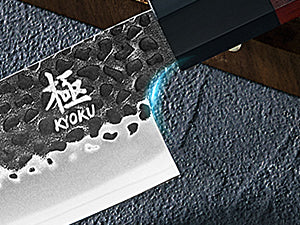 - Razor-Sharp Vegetable Knife: This 7" Japanese nakiri knife from Kyoku's Kage Series is expertly forged from 3-layer 9Cr18MoV laminated steel with a 58 HRC hardness, offering corrosion resistance and toughness that withstands the rigors of daily cooking