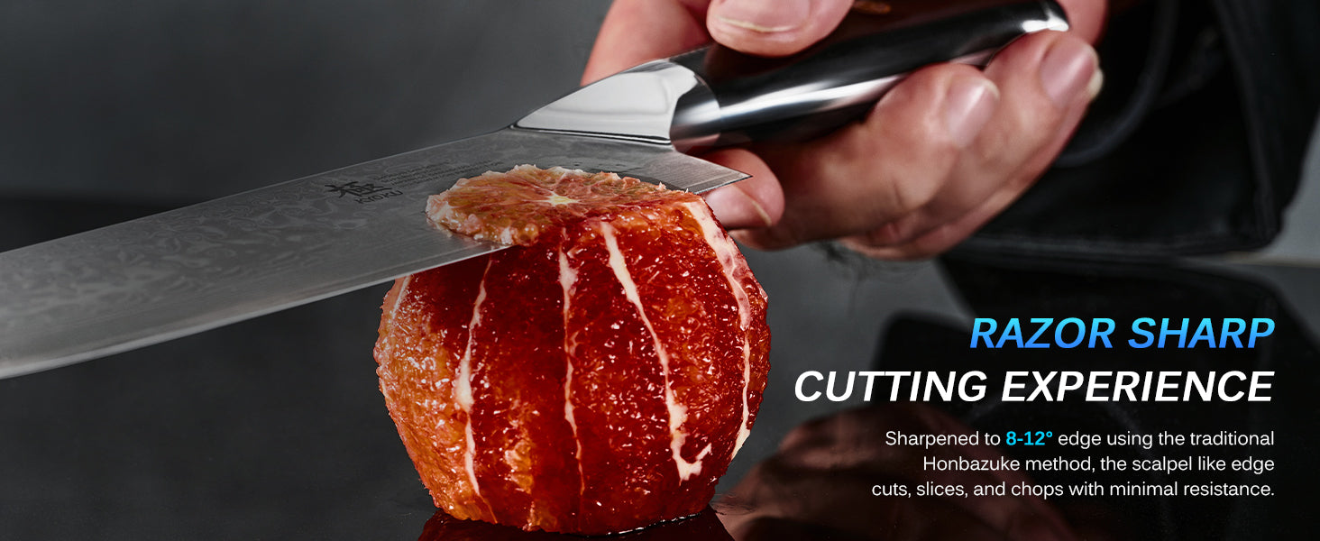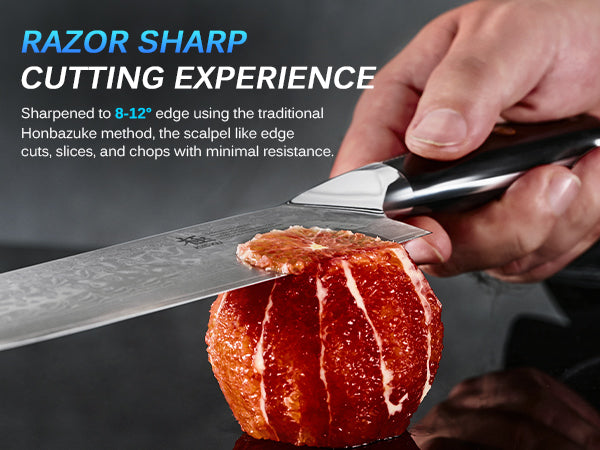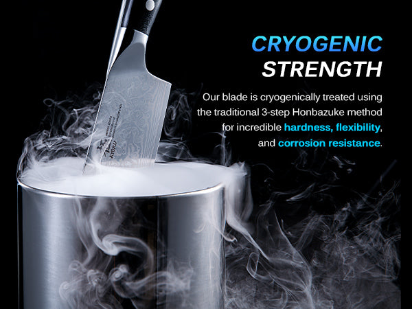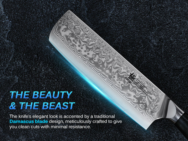 Painstakingly manufactured with 67-layered stainless Damascus steel, the 7" Japanese Nakiri knife is the ultimate nakiri vegetable knife. Regardless of what you want to do–slice, chop, mince, you name it—it gets the job done flawlessly and effortlessly. The gorgeous herringbone pattern on the base of the tang unveils the stunning craftsmanship and the nakiri knife's luxurious identity.