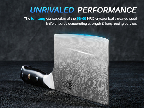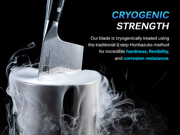This cleaver knife is a perfect fusion of tradition and technology, featuring cryogenically treated Japanese VG-10 steel and an innovative ionic silver coating for unrivaled hygienic performance.