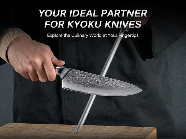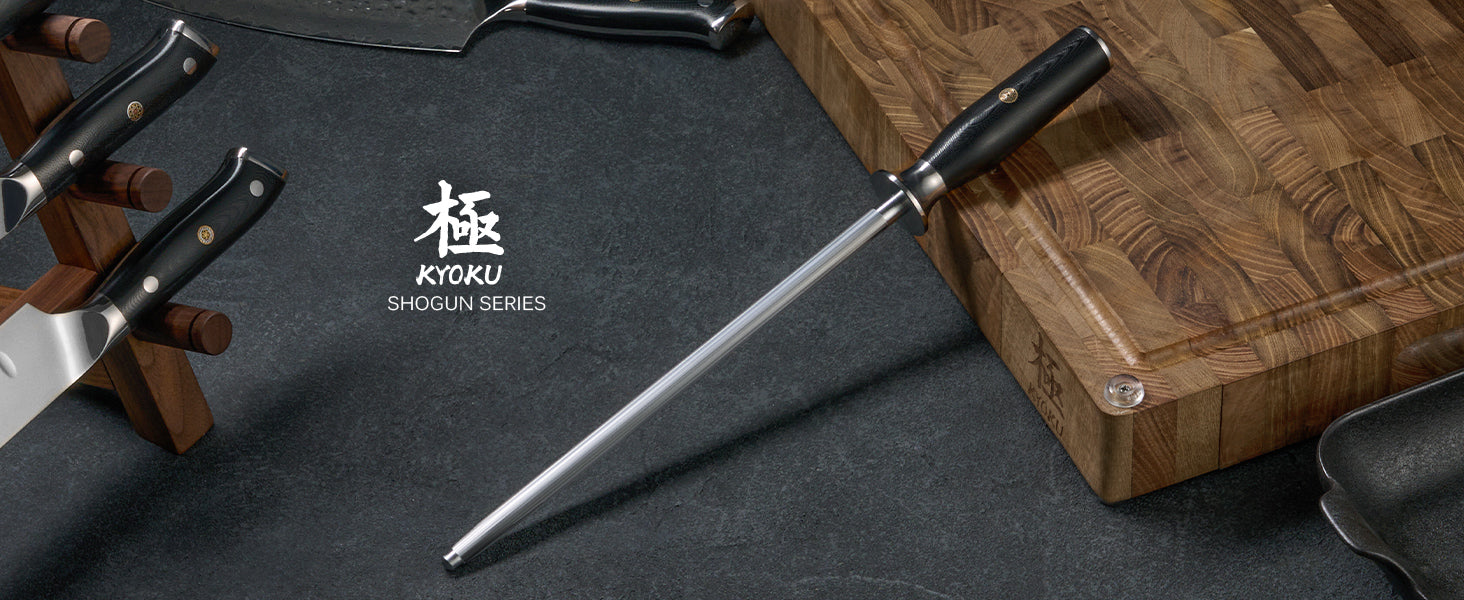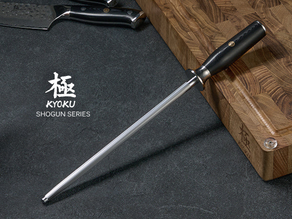10" Honing Rod: Keep your knives razor-sharp and perfectly aligned using Kyoku's 10 in. honing steel from the Shogun Series, equipped with an ergonomic handle and carefully polished surface to ensure your blades are always prepared for culinary tasks.