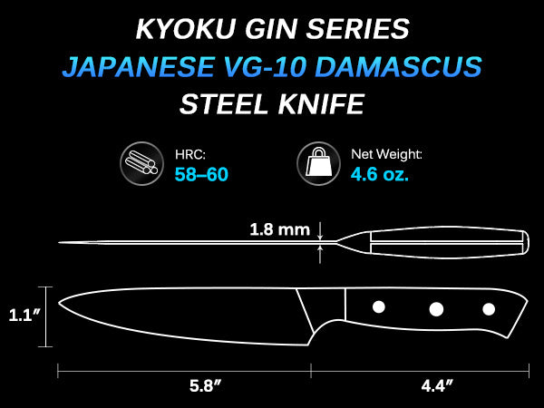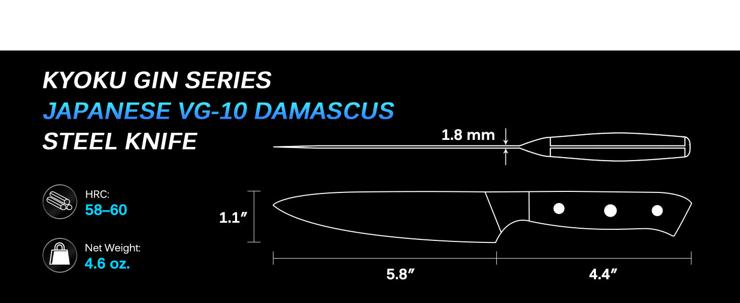 - Blade Material: VG-10 Stainless Steel, Ionic Silver Oxide
