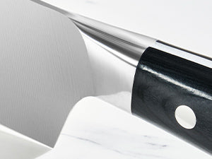 The meticulously constructed, triple-riveted Pakkawood handle has gone through special treatment, making the knife impervious to heat, cold, and moisture.