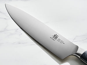 Painstakingly manufactured with high-carbon, cryogenically treated steel, the 8" Japanese chef knife—or "Gyuto Knife"—from Kyoku is a must-have in any kitchen. The chfe knife slices effortlessly and chops meat, fish, vegetables, and more like a charm. The ergonomic, triple-riveted, pakkawood handle with satin finish ensures maximum comfort while delivering incredible durability.