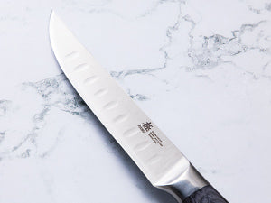 Seasoned artisans handcraft the knife's ruthlessly sharp edge to a mirror polish at 13-15° per side. This is achieved using the traditional 3-step Honbazuke method. The knife is treated for incredible hardness, flexibility, and corrosion resistance.