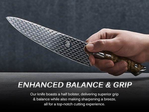 - Unique Koi Scale Pattern: This chef's knife features an eye-catching koi scale pattern that not only adds to its visual charm but also makes slicing and dicing effortless by preventing food from sticking.