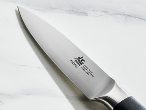 - 3.5" Paring Knife: Kyoku's 3.5" paring knife from the Samurai Series is expertly crafted with Japanese high-carbon steel for superior performance and durability. With its sharp blade, this knife is perfect for slicing, peeling, and trimming.