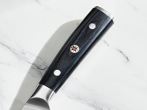 The meticulously constructed, triple-riveted Pakkawood handle has gone through special treatment, making the knife impervious to heat, cold, and moisture.