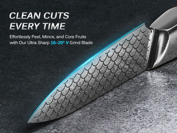 - Razor Sharp Blade: Crafted from Japanese VG-10 stainless steel with 58-60 HRC, this small kitchen knife features a blade precisely honed to an angle of 16-20 degrees, while boasting exceptional corrosion resistance for reliable and long-lasting performance.