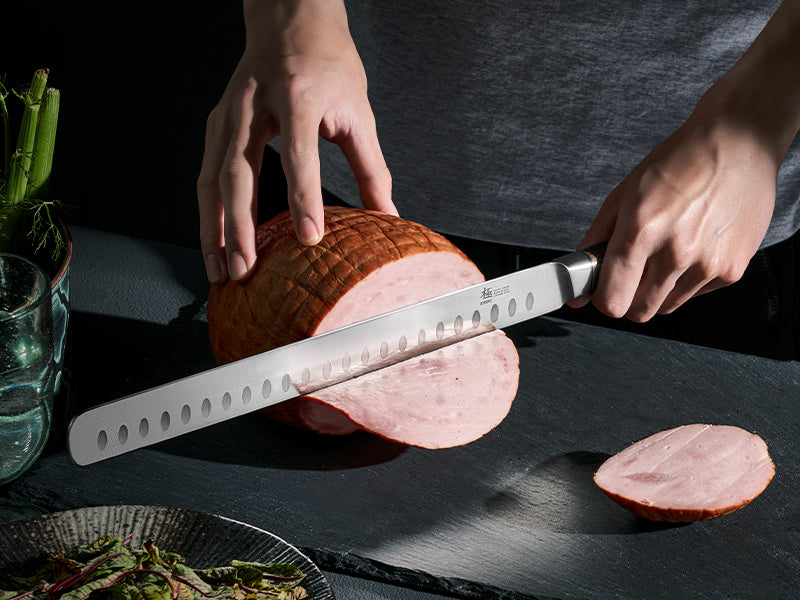 Meat slicing: Slicing knives excel at cutting through cooked or roasted meats with precision and ease. Their long, narrow blades create thin, uniform slices of meat, making them ideal for serving perfectly portioned cuts.