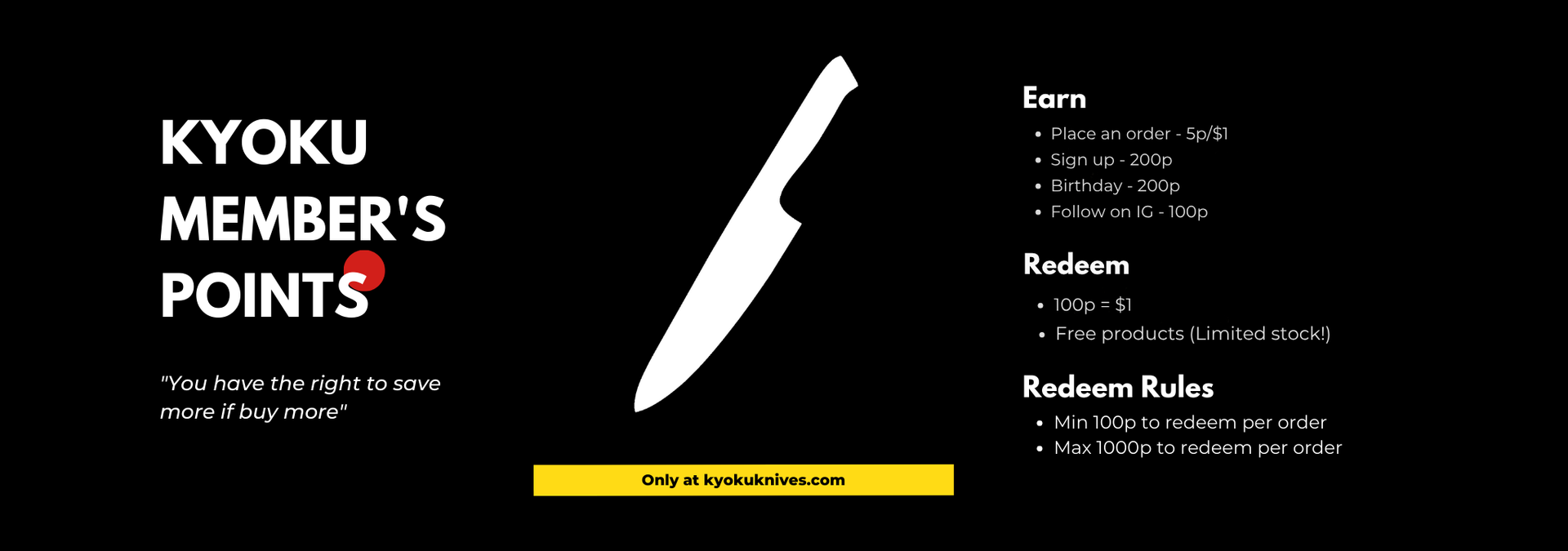 Earn points with membership - Redeem rewards and get free knives with every order