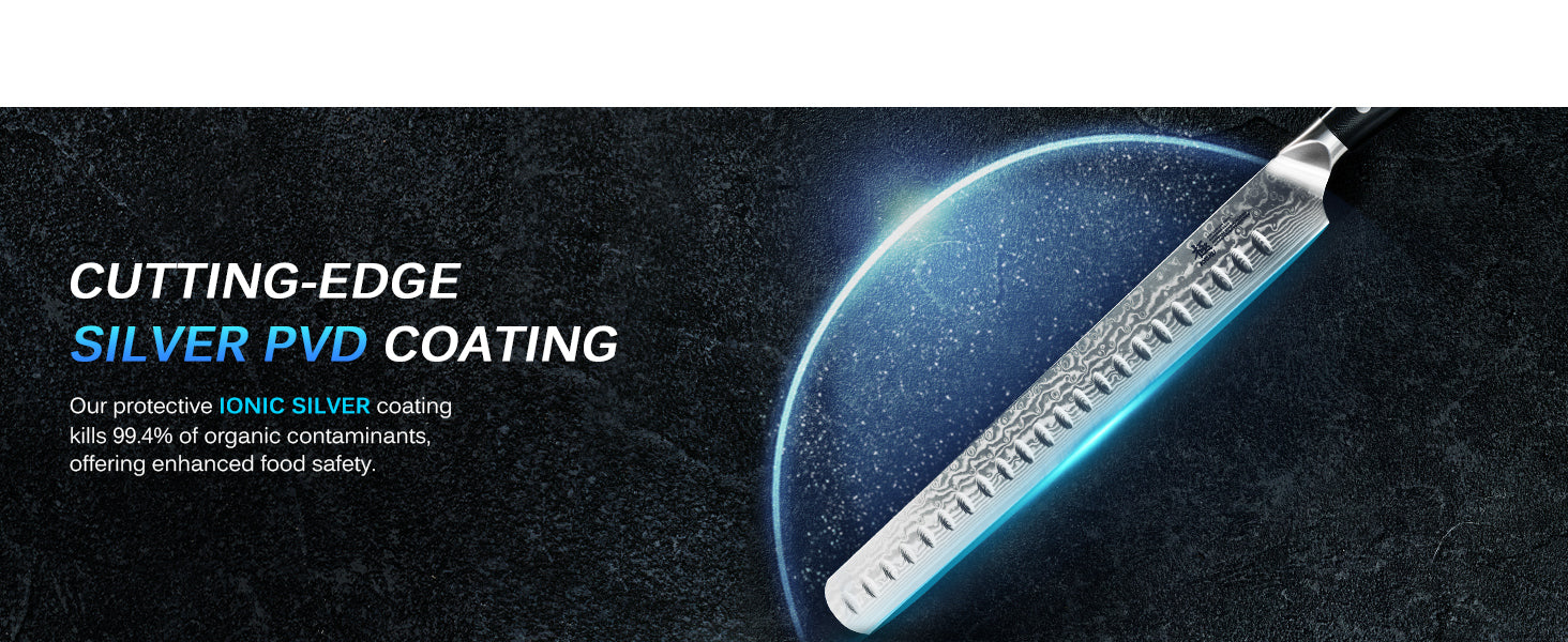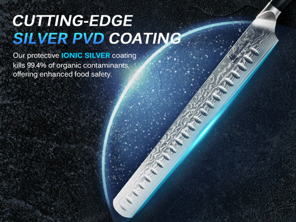 - INNOVATIVE PROTECTION: Our blade boasts an ionic silver PVD coating to prevent growth of unwanted organic contaminants for extra culinary safety; the provided sheath and case allow you to preserve your knife with care