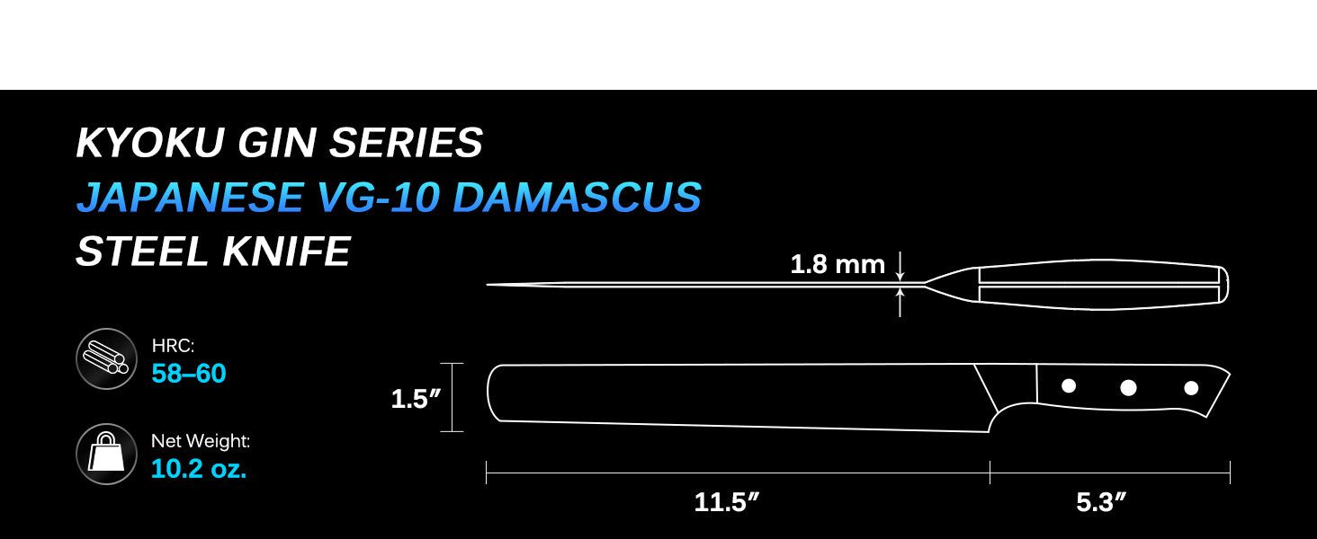 - PRECISION AND COMFORT IN ONE: Built with a 66-layer Damascus VG10 stainless steel blade and an ergonomic fiberglass G10 handle with signature mosaic pin, this kitchen knife provides both durability and balanced control for comfortable use