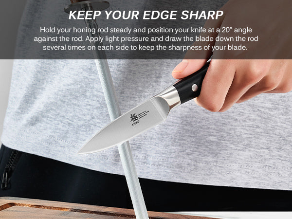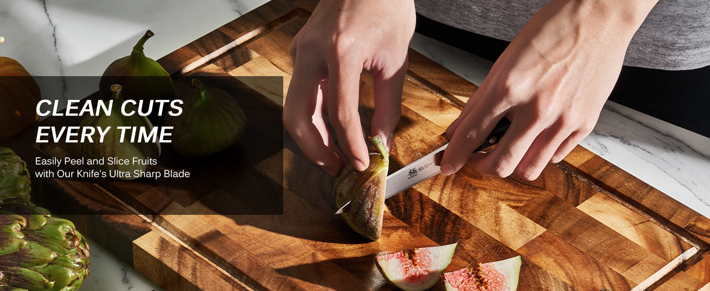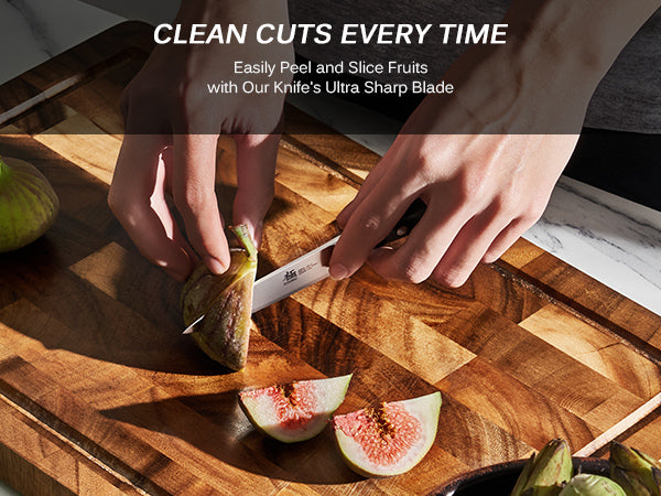 - Razor Sharp Blade: This carbon steel knife's ultra-sharp blade is precisely honed to 13–15 degrees, making it perfect for peeling apples, trimming fat, deveining shrimp, and removing seeds with minimal resistance.