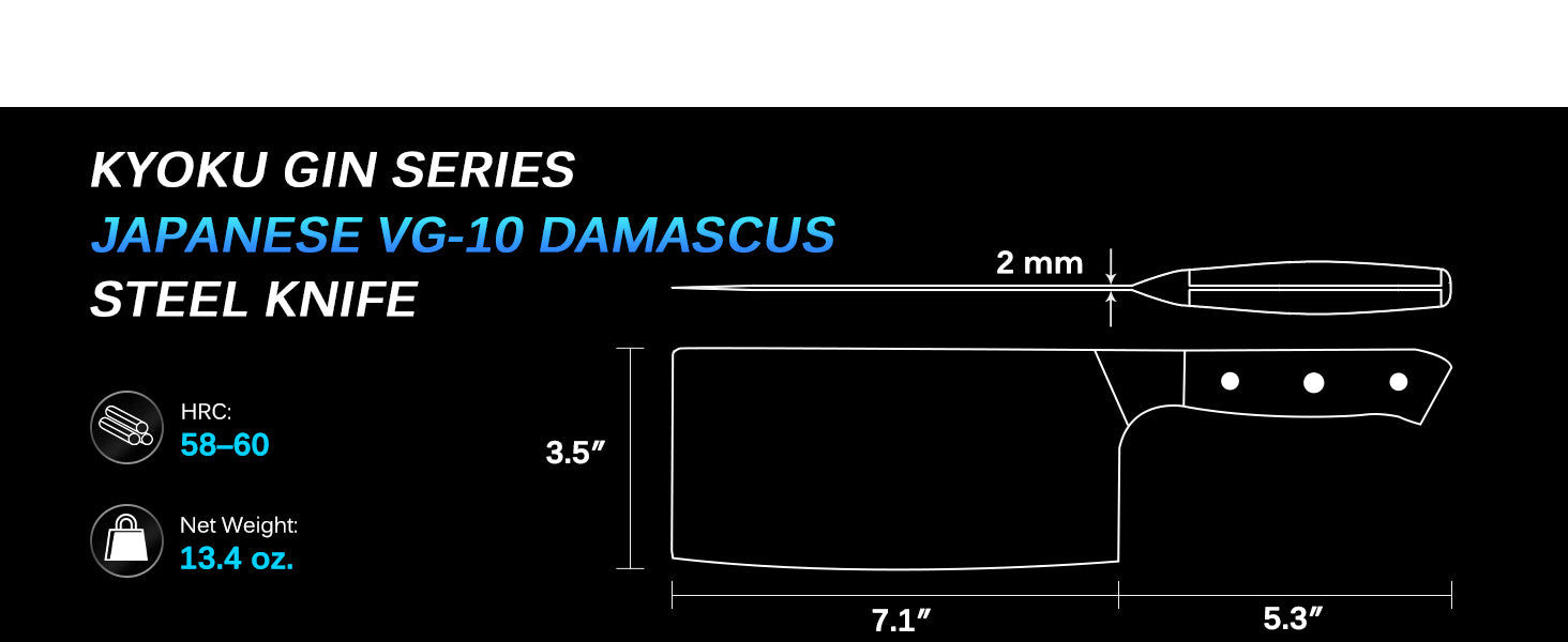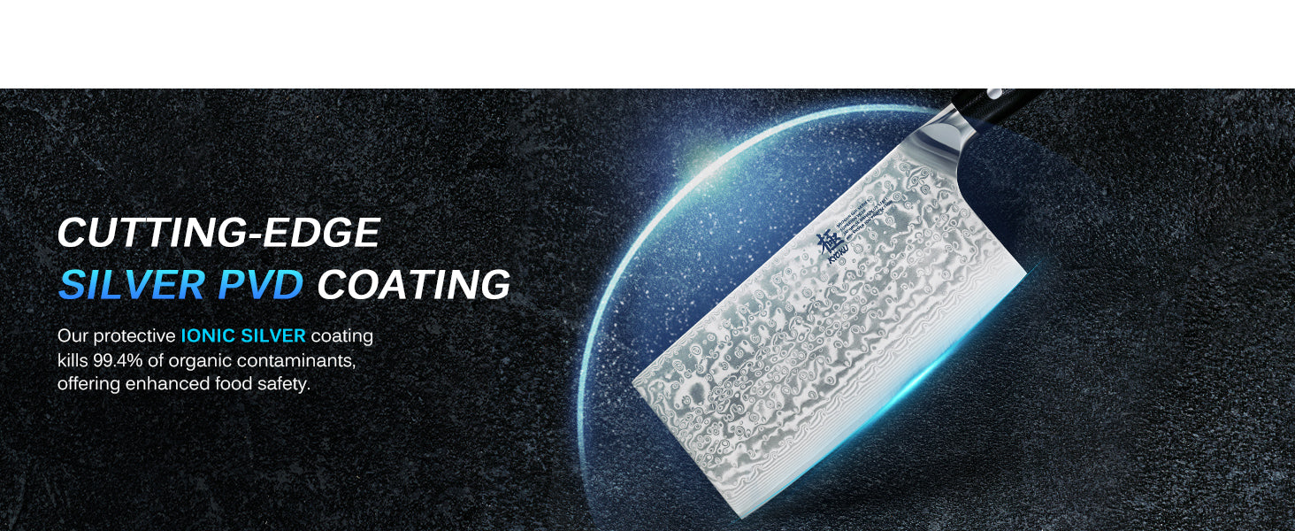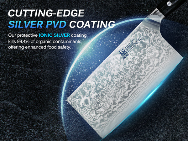 This cleaver knife is a perfect fusion of tradition and technology, featuring cryogenically treated Japanese VG-10 steel and an innovative ionic silver coating for unrivaled hygienic performance.