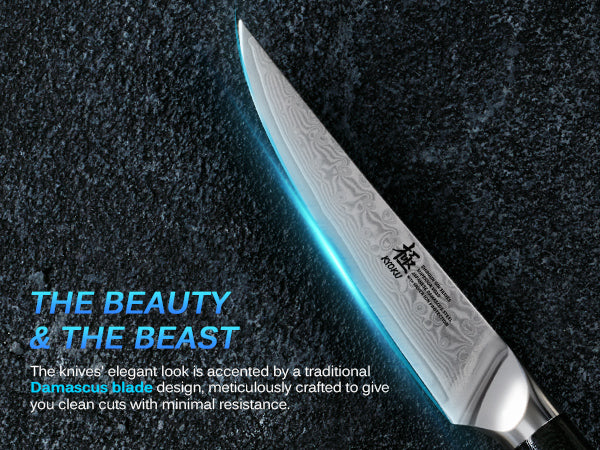No steak dinner is complete without a set of gorgeous steak knives. Each of these Japanese non-serrated steak knives is manufactured with 67-layered stainless Damascus steel, which helps you cut through any juicy steak smoothly, without compromising its original texture and taste.